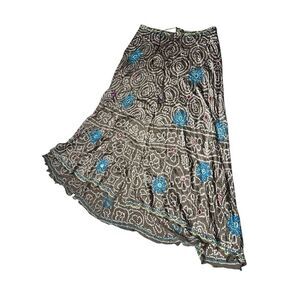 RARE VINTAGE BEAUTIFUL WOMEN Vintage Handmade India A-Line Beaded Drawstring Waist Embroidered Beautiful Skirt 100% silk MAXI SKIRT medium