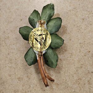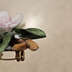 This is an AUTHENTIC Capodimonte Flower Bouquet Brooch. These brooch is has the original Capodimonte sticker on the back! This floral brooch is sure to dress up any outfit!! This brooch is composed of Capodimonte porcelain. The sticker is signed, "Capodimonte." The brooch has a LOVELY flower spray design and VERY elegant for a night out on the town. This comes from a non-smoking home. This measures 2 5/8"L (from top to bottom) by 1 3/8"W (at widest point.) There are chips on the edges...see pictures. Pictures of actual item.