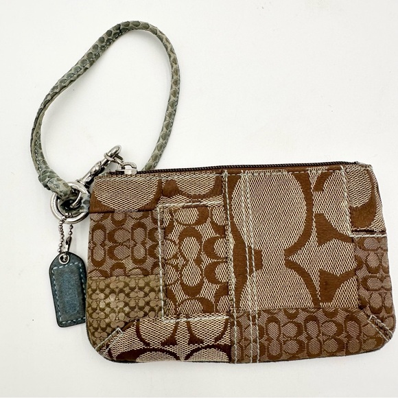 Rare Coach patchwork wristlet with python pull tag.