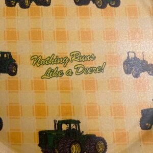 Add this rare plate to any down-home, farm-themed collection of John Deere memorabilia with this 10” collector plate. This vintage plate is ideal for those who appreciate the rich history and legacy of John Deere and its ubiquitous tractors. The plate features the iconic John Deere logo at the NESW points, the "Nothing Runs Like a Deere!" catch-phrase in the center, and several images of Deere tractors/farm equipment covering the plate. The back of the plate is covered in a textured gold finish.
