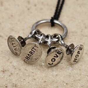 RARE VINTAGE MONICA RICH KOSANN FAITH CHARITY LOVE HOPE CHARM PENDANT NECKLACE