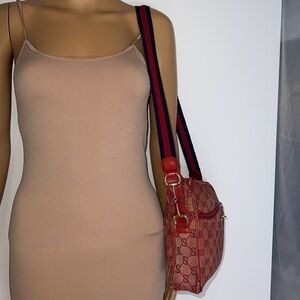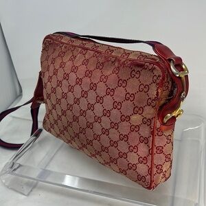 RARE VINTAGE RED GUCCI CANVAS SHOULDER BAG