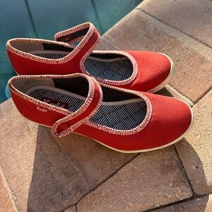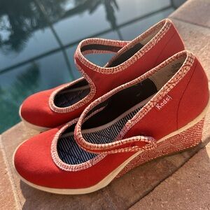 RARE VINTAGE RETRO MARY JANE KEDS Red/White Canvas Wedge Heel SIZE 6.5