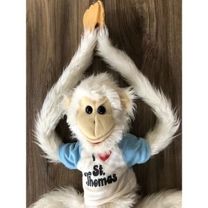 Description: This Joy Times Full Body Monkey Puppet has Velcro on its hands and feet. monkey comes with a “ I Love St.Thomas” T Shirt. Light signs of wear due to age.