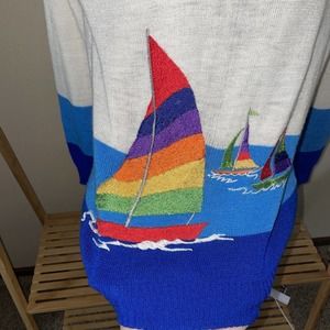 RARE VTG 70'S CYN LES SHIRLEE DESIGNS SAILBOATS SWEATER L Large