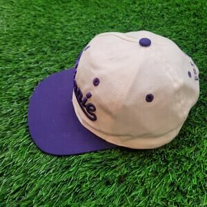90s Mickey Inc Minnie Mouse cream purple snapback youth hat with puffy script embroidery vintage Disney