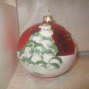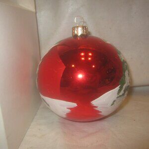 VTG 90'S RARE ANDRZEJ GLASS ORNAMENT WITH HAND PAINTED SNOWMAN SCENE ON A RED BALL