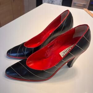 RARE VTG Gianfranco Ferre Black Leather Round Toe Pumps 8.5