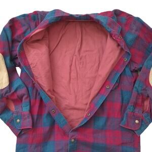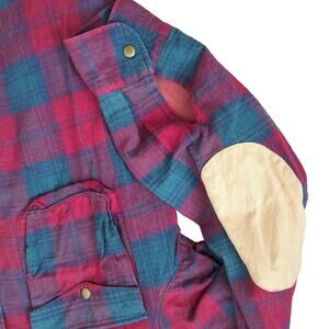 Super cool rare vintage Neiman and Marcus collection NM supply company men's flannel shirts fully lined thick warm jackets shirt jacket plaid red blue snap front utility pockets elbow patches high quality vintage Neiman and Marcus a rare piece super retro!!