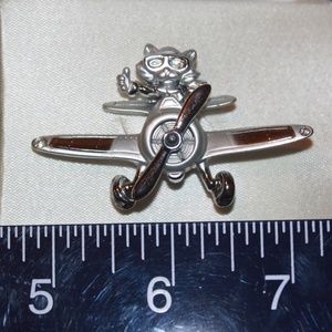 RARE VTG SIGNED CAT PIN Airplane Flying Kitten