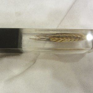 This vintage souvenir letter opener from the Continental Grain Co. is a unique and rare find for collectors. Made with a combination of lucite and metal, this item has a distinctive look that is both sleek and stylish. Its intricate design is sure to catch the eye of anyone who appreciates vintage collectibles. As a unique desktop item, this letter opener is perfect for anyone who enjoys writing with traditional pens and paper. Its handmade quality and vintage nature make it a one-of-a-kind addition to any collection. Whether displayed on a desk or used regularly, this item is sure to bring a touch of nostalgia and charm to any setting.