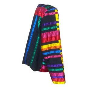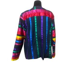 RARE VTG Tachi Castillo Short Waste Rainbow Ribbon Jacket Colorful Gem Art Wear