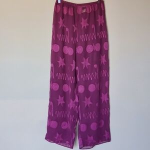Rare Vintage Victoria's Secret Gold Label Sheer PJ Set in excellent condition. No flaws. I wear M and these fit perfectly. Waist has elastic band so there's room for extra stretch. Just a gorgeous and sexy set of PJ's. You can wear the top by itself as a gown or pair it with the matching pants. Beautiful textured fabric with stars that would be perfect for a sexy holiday set.