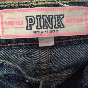 Victoria's Secret PINK distressed jeans. Rhinestones near the seam travel from waist to knees. SUPER cute on! Size 4