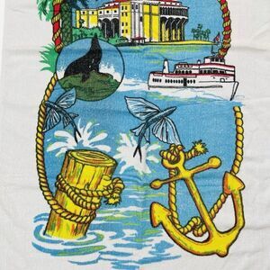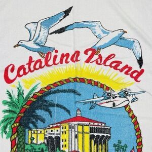 RARE Vintage 1980s Hedley Catalina Island 100% Cotton Towel 55 x 29 Beach Souvenir Terry Cloth Body California Cali LA Los Angeles Vacation 80s Gift Nostalgia Memories Replacement Colorful Ocean Casino Sun Plane Ferry Seal Anchor Flying Fish Tour