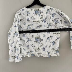 RARE Vintage 1980s Laura Ashley Blouse Floral Lace Size Small Ruffle Sleeves
