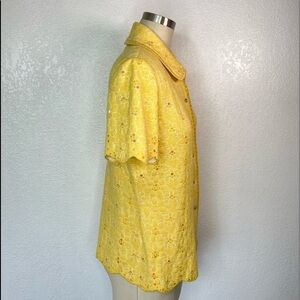 RARE Vintage 70s retro St. John yellow knit holographic daisy sweater top 6
