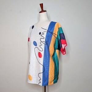 RARE Vintage 80s VERA Short Sleeve Bright Print Poly Blouse