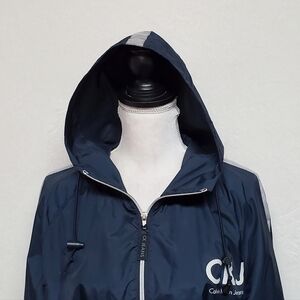 Rare Vintage 90s Calvin Klein Jeans Logo Front Full-zip Hooded Windbreaker.