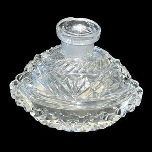 This vintage perfume bottle is a true gem for any collector of antique vanity items. The exquisite cut glass design and Victorian style make it a unique addition to any decorative glass or crystal collection. Its petite size of 3 inches by 2.5 inches makes it perfect for display on a vanity or dresser. No stopper