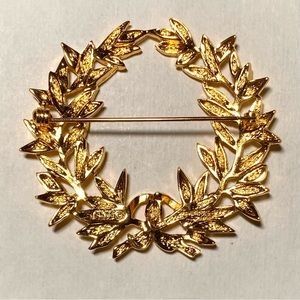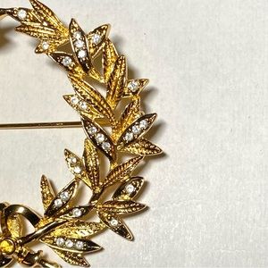 RARE Vintage CHRISTIAN DIOR Gold Plated Wreath w/Crystal Flower Leaf Brooch Pin