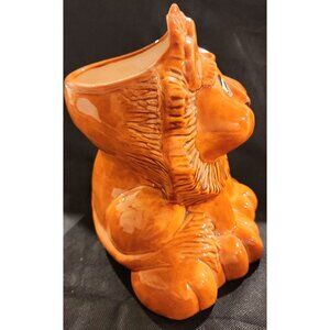 This vintage ceramic lion planter vase is skillfully handcrafted, making it an eye-catching piece for displaying plants or as a decorative figurine. Its unique design and natural brown finish enhance any interior space with a touch of character. Ideal for collectors or those looking to add a distinctive decorative element.