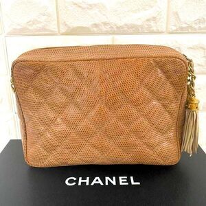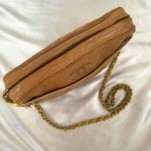 RARE Vintage Chanel Tan Lizard Leather Camera Bag with Chain Strap and Tassel