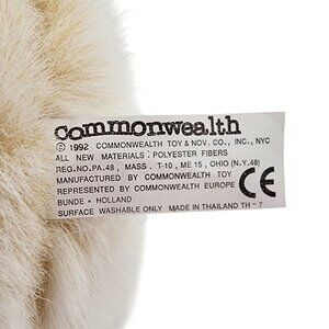 Approximately 9" tall stuffed animal plush of Lil' Tweaks. Light tan & ivory fur plush. Wearing a purple plaid knit sweater. Red nose & brown eyes. Left ear makes a squeaky noise when pushing on the ear. Made in Thailand. 1992 Commonwealth Toy & Nov. Co., Inc, NYC. Vintage, retro, 1990's, 1990s toys