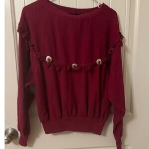 Beautiful Condition Burgundy southwestern sweatshirt Fringe top with conchos
