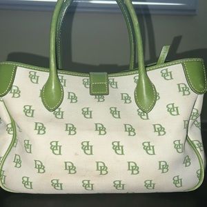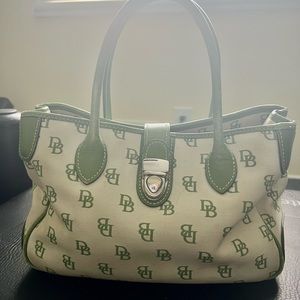 RARE Vintage Dooney & Bourke, D&B, cream & green Satchel handbag w/leather trim