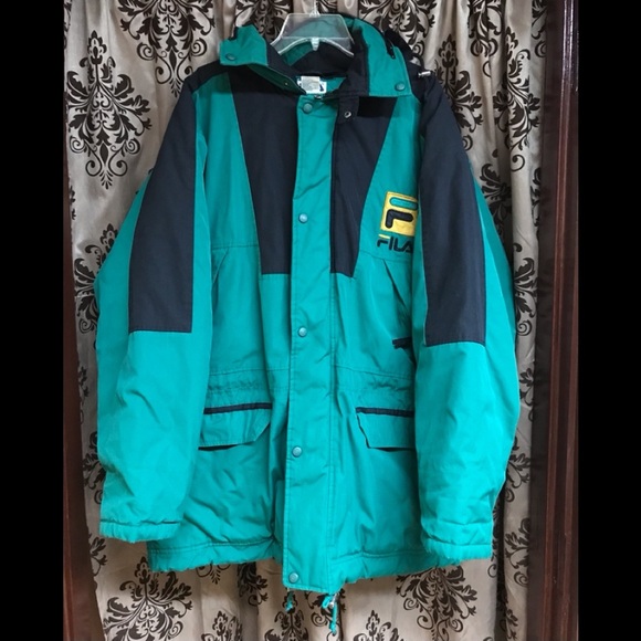 This is a nice rare vintage Fila parka jacket in great condition the jacket features an all over Fila script in the interior of the jacket and on the inside hood which is packable. And an embroidered Fila patch on the front and back of the jacket.