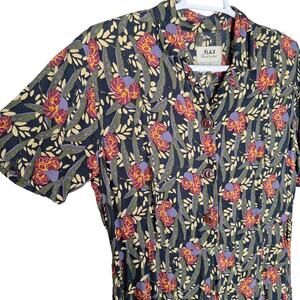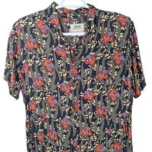 RARE Vintage Flax Dress Short Sleeve Moody Floral Busy Buttons Collar Pockets M