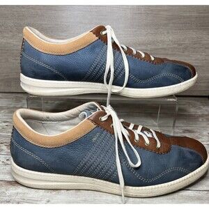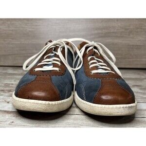 RARE! Vintage Fossil Men's Size 10 Leather Sneakers Brown Blue Shoes Retro Motor