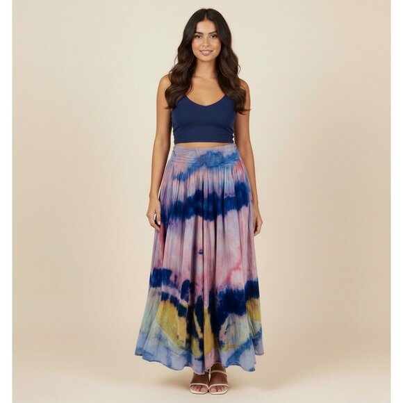 RARE Vintage Free People Hippie Tie Dye Gauzy Flowy Maxi Skirt Coastal Boho Y2K