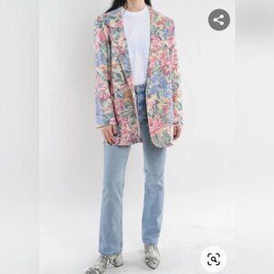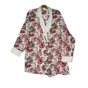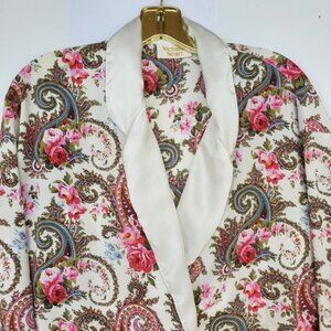 Vintage Victoria's Secret. Gold Label. RARE ivory with paisley and floral print! Double breasted with 4 fabric buttons. Ivory satin lapel and cuffs. **Small grey mark on the inside of lapel near hem, cannot be seen from outside, untreated, otherwise - mint condition vintage piece. Wear to bed or out as a blazer. So easy to tie a front knot and wear as a blouse with cutoffs and heels. Wear over satin slacks for a complete chic look. Wear buttoned up over a mini skirt and boots!