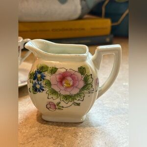Hadson chinaware, marked "Made in Occupied Japan," dating it between 1945 & 1952. Due to its age there is some ware. The sugar bowl does have a chip on the inside of the lid (this is captured in the photos) It cannot be seen from the outside.
