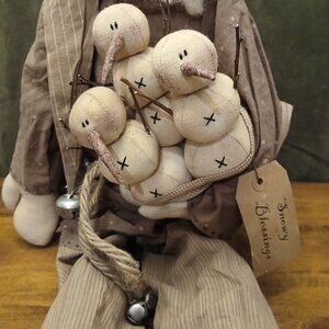 *RARE* Vintage “Honey and Me” Primitive Folk Art Santa & Snowmen Doll (NWT)