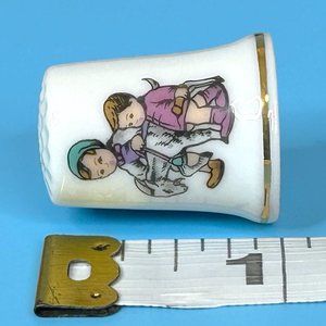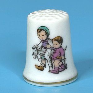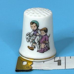 RARE Vintage Japan Collectible Kids Children w/ Goat Gold Trim Porcelain Thimble