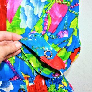 This rare Vintage Couture dress from the 1980s from the Kanga label by Dale Tryon will bring a smile to your face with it's bright happy colors and flattering shape!