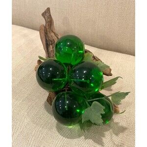 RARE Vintage Large Green Lucite Grape Cluster on Driftwood Burl Wood MCM Retro