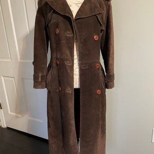 Amazingly unflawed condition on this brown suede 100% leather calf-length, double-breasted coat from 1968. I *HATE* to let this go, but it's not doing anyone any good hanging in my closet. It should be worn and loved to death because it will last a lifetime.