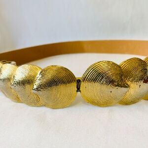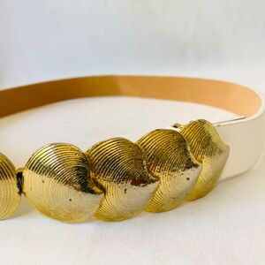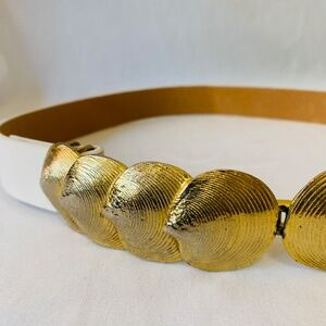 RARE Vintage MIMI DI N 8 Gold Shell Belt Buckle with White Belt sz S/M