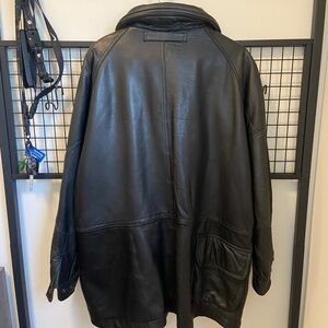 RARE Vintage Nautica genuine leather men’s black button pocket zip jacket coat