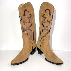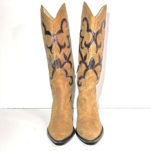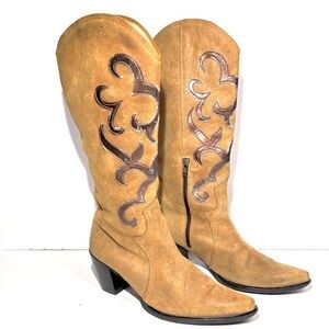 RARE Vintage Nine West Distressed Leather Heeled Cowboy Boots