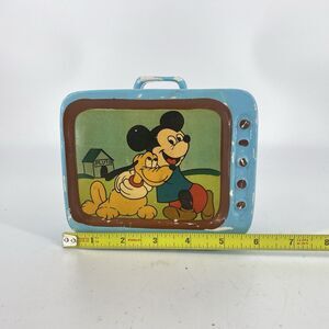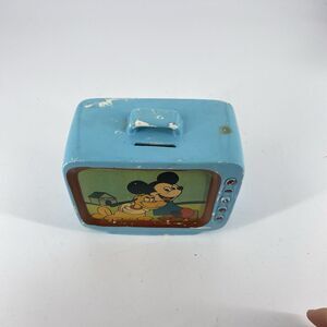RARE Vintage Old Disney Mickey Mouse Pluto TV Blue Ceramic Piggy Bank No Stopper