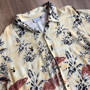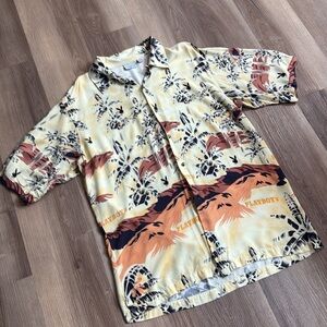 RARE Vintage PLAYBOY Hawaiian Bunny Yellow Button Up Men’s XL Rayon Shirt