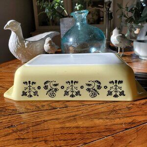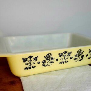 RARE Vintage Pyrex | Yellow Embroidery | Black Needlepoint | Space Saver