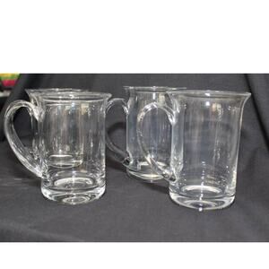 A rare set of unused handblown clear glass beer mugs. Michael Bangs Globetrotter made prior to 1973. The set was made at Holmegaard in Denmark.