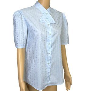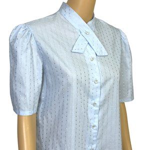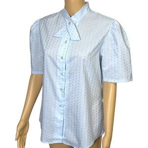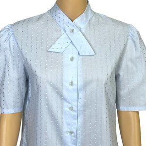 RARE Vintage Shapely Womens 14 Light Blue Button Up Short Sleeve Blouse Shirt