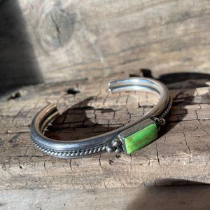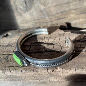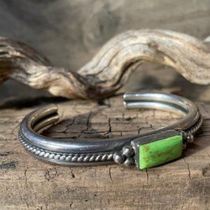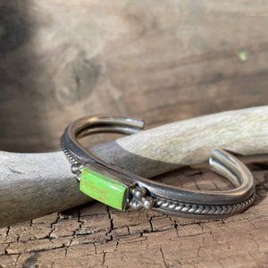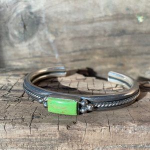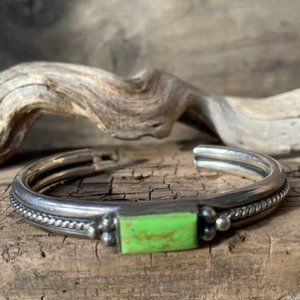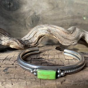 RARE Vintage Signed A.Cadman Navajo Gaspeite & Sterling Silver Cuff Bracelet